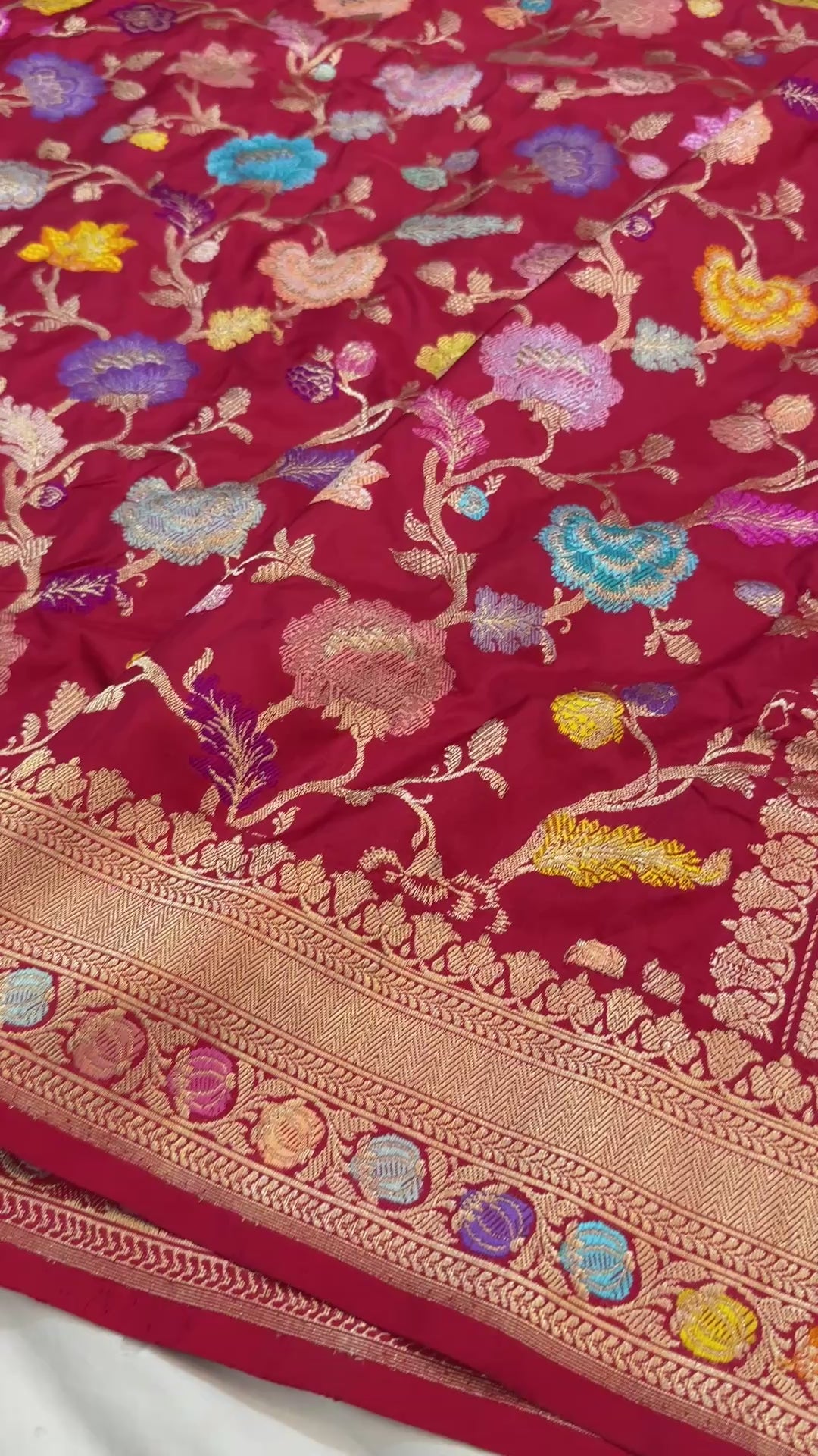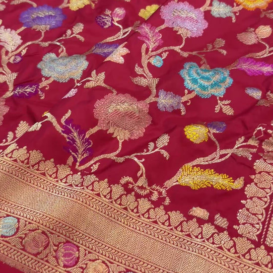 Red Multi Jungla Pure Handloom Banarasi Katan by Katan Silk Saree