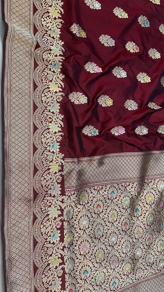Maroon Designer Handloom Banarasi Katan by Katan Silk Saree