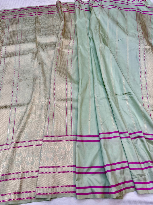 Light Mint Green skirt Pattern Designer Handloom Banarasi Katan by Katan Silk Saree