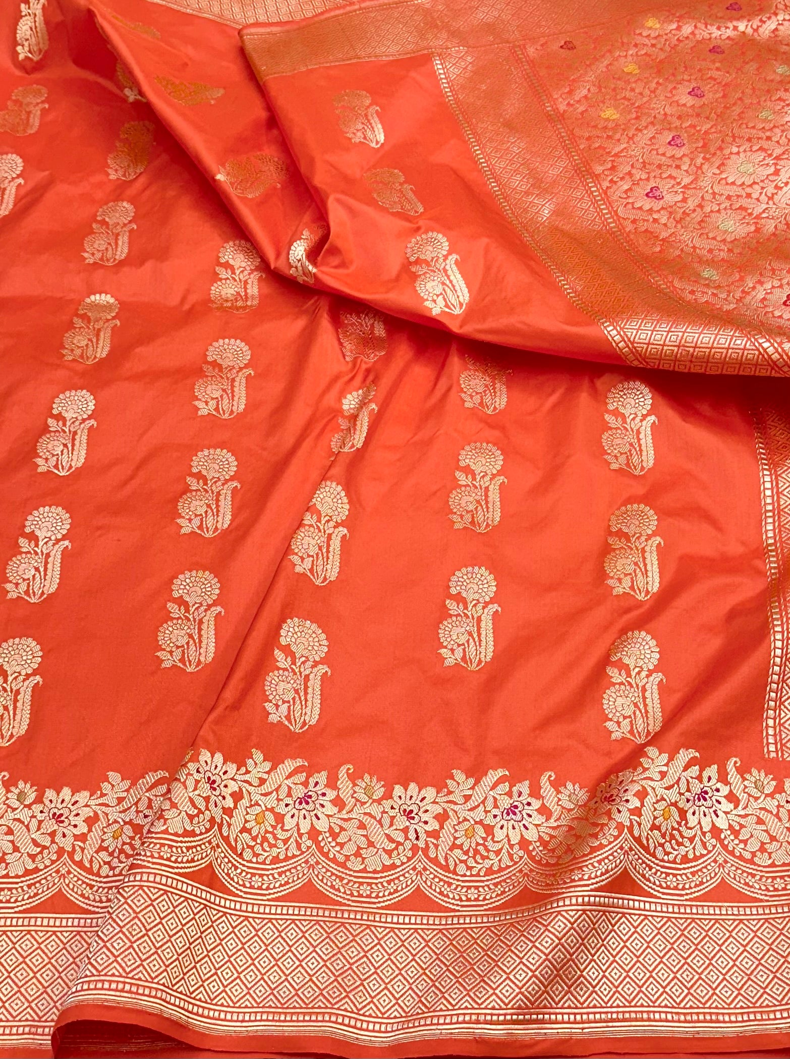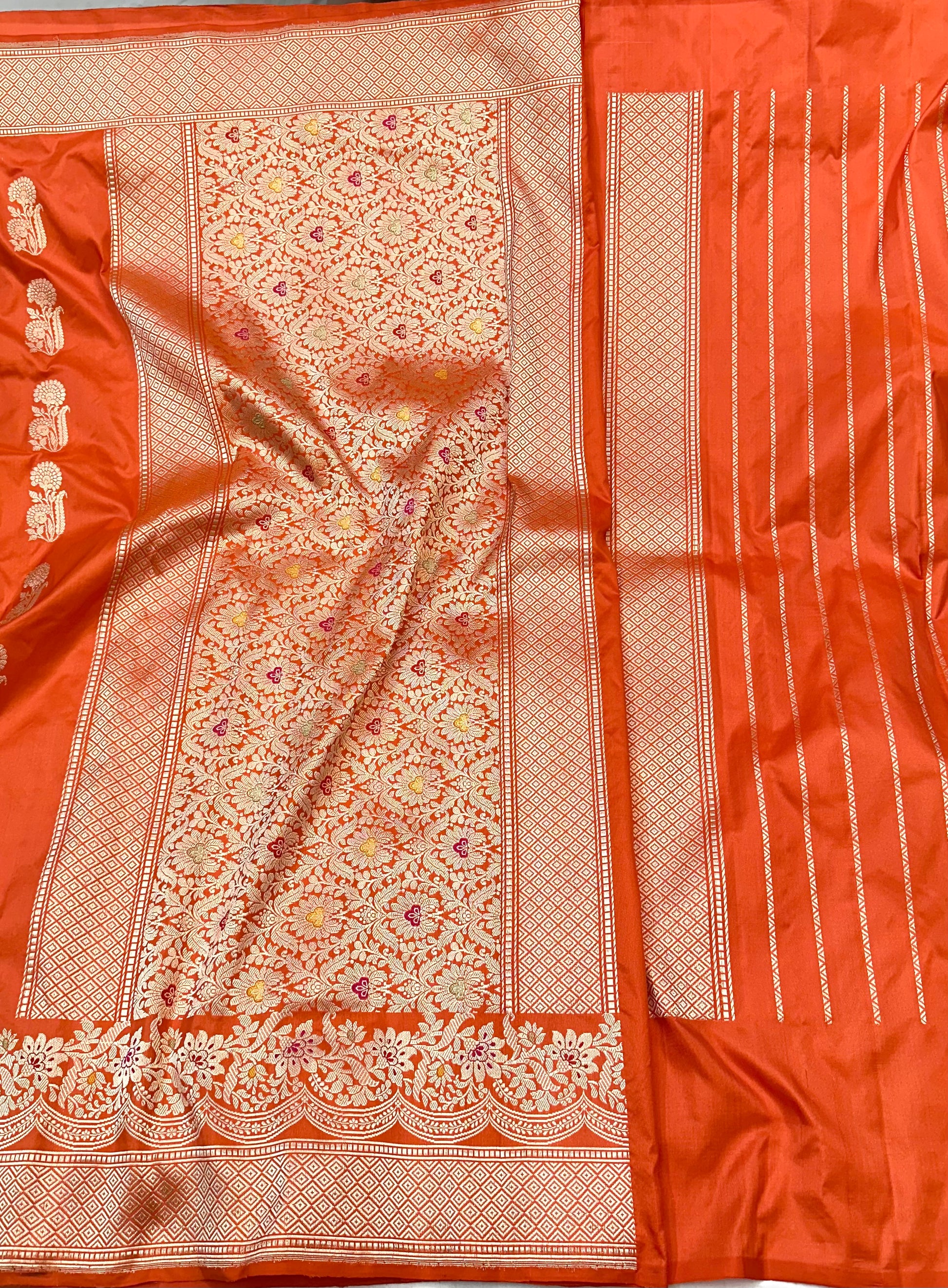 Orange Designer Handloom Banarasi Katan by Katan Silk Saree