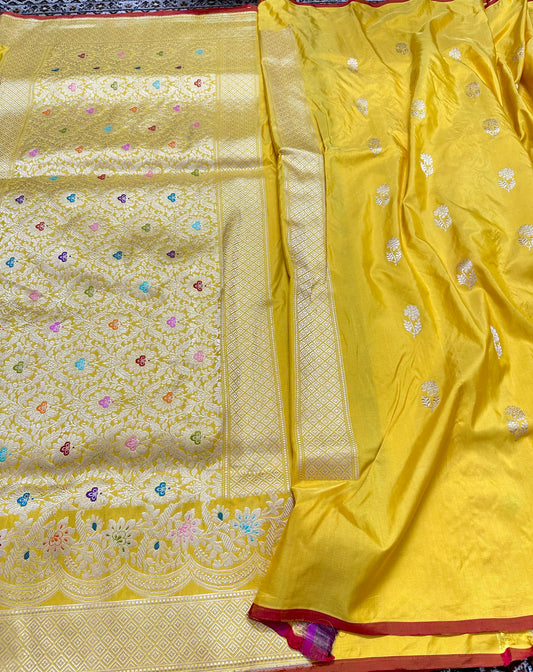 Yellow Designer Handloom Banarasi Katan by Katan Silk Saree