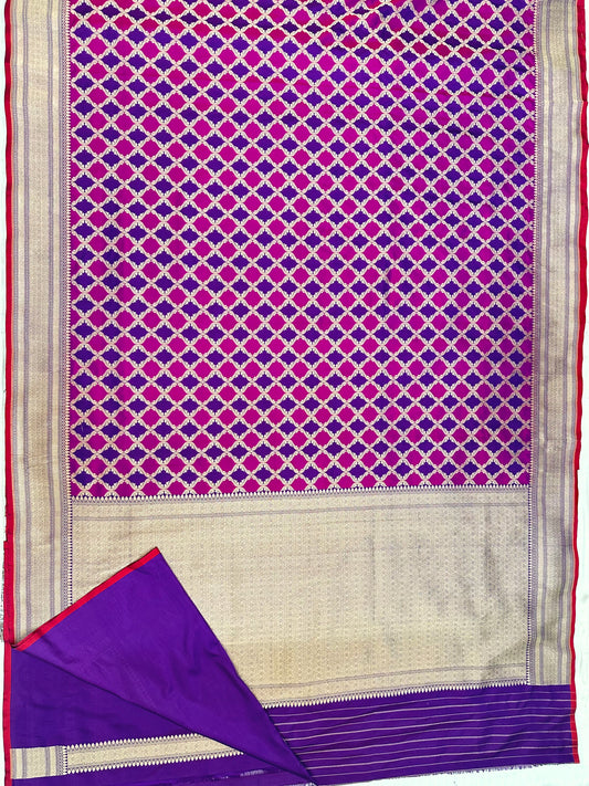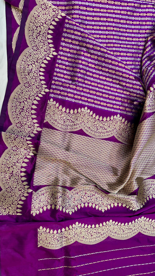 Magenta stripes Scallop border Designer Handloom Banarasi Katan by Katan Silk Saree
