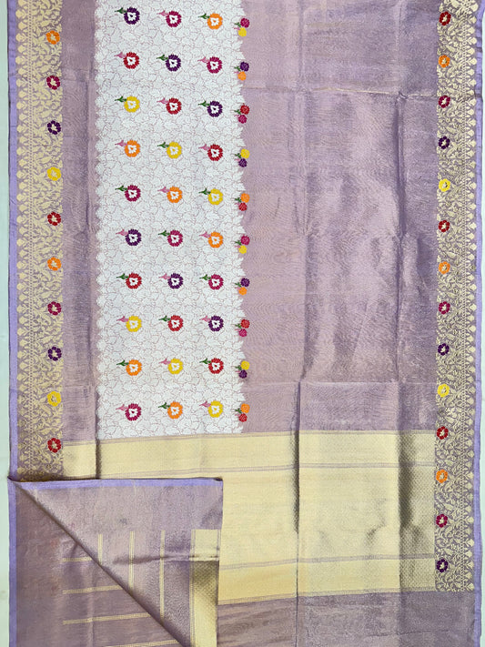 Lavender Designer Handloom Banarasi Tissue Silk Saree