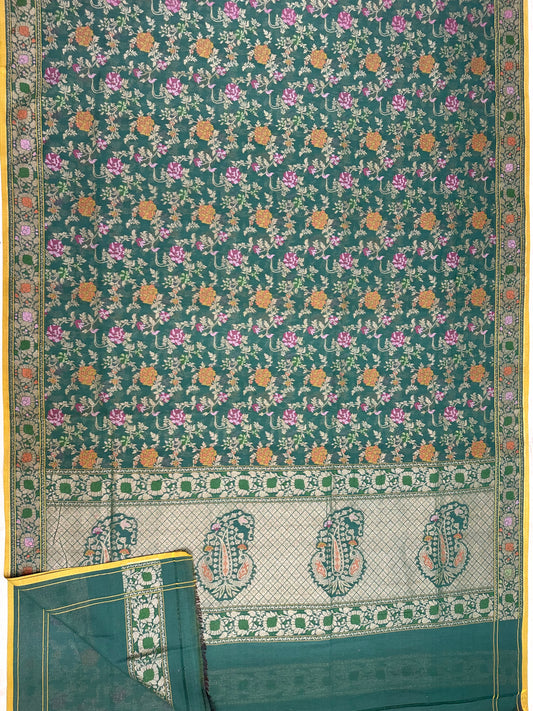 Bottle Green Pure Banarasi Muslin Cotton Jamdani Saree