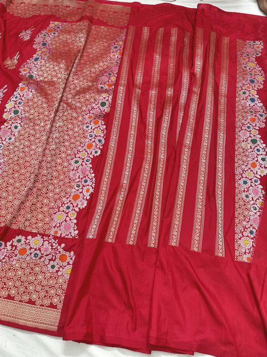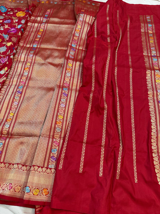 Red Multi Jungla Pure Handloom Banarasi Katan by Katan Silk Saree