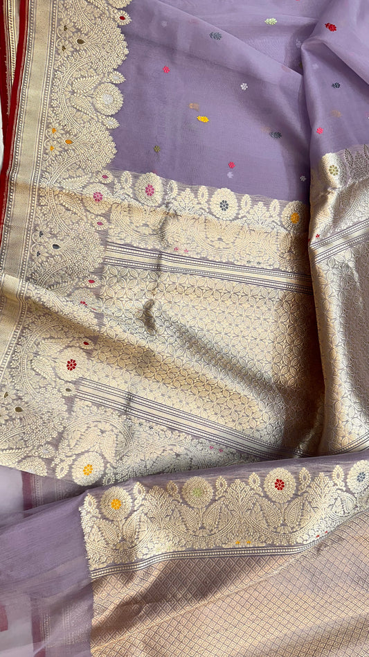 Lavender Handloom Pure Banarasi Kora Organza Saree