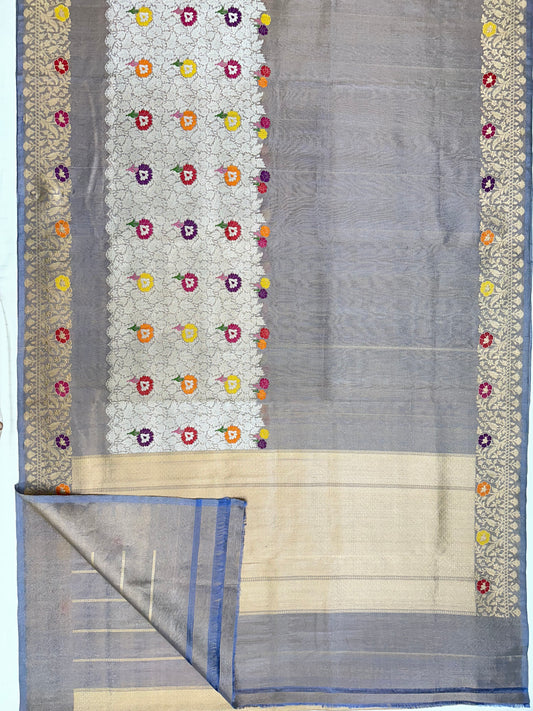 Bluish Grey Designer Handloom Banarasi Tissue Silk Saree