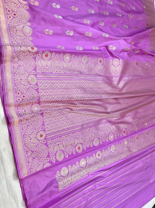 Lavender Designer Handloom Banarasi Katan by Katan Silk Saree