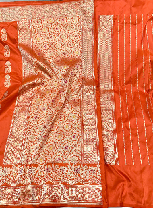 Fanta Orange Rangkat designer Pure Handloom Banarasi Katan by Katan Silk Saree